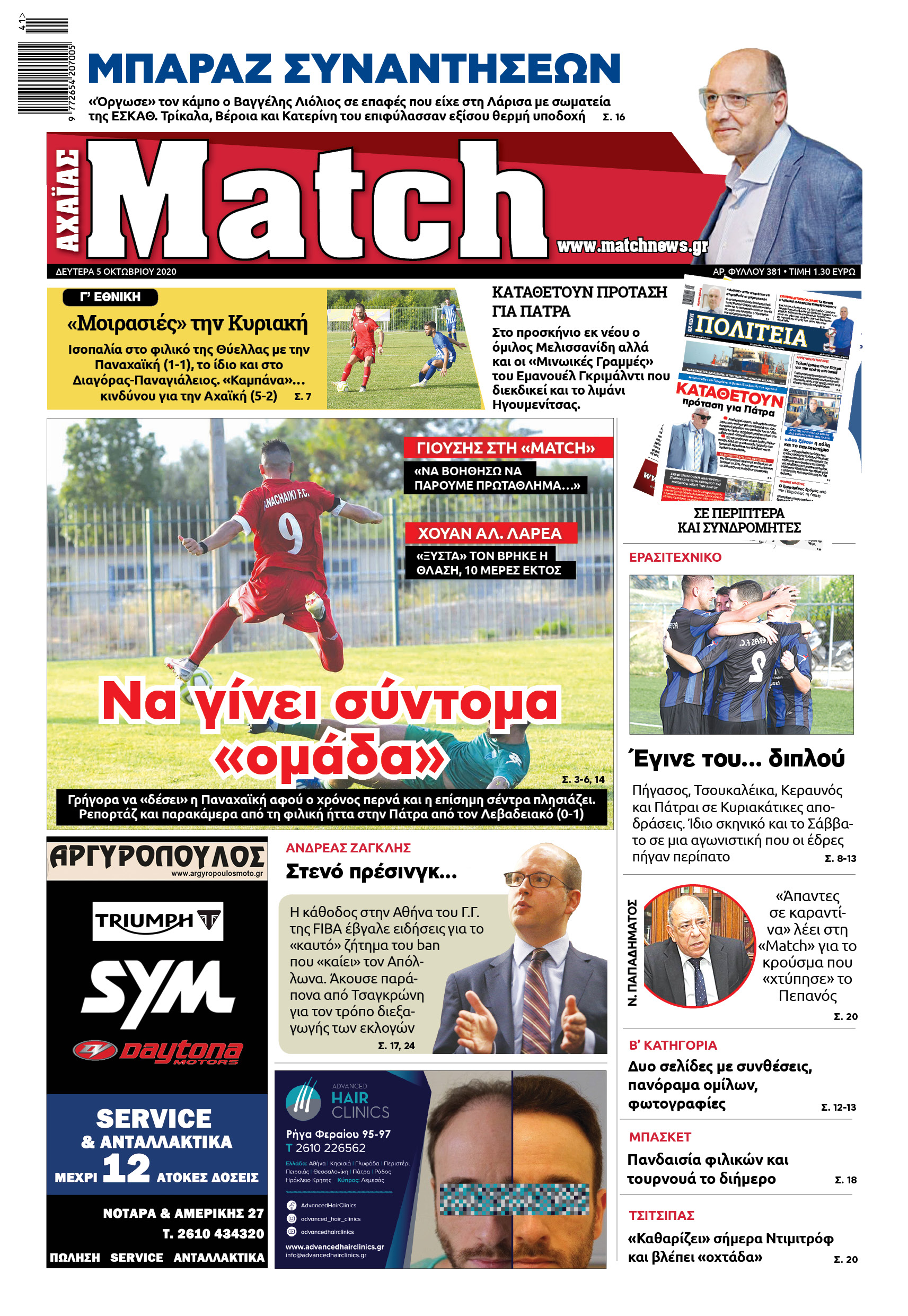 Στη «Match» που κυκλοφορεί: Σύντομα «ομάδα» να γίνει η Παναχαϊκή