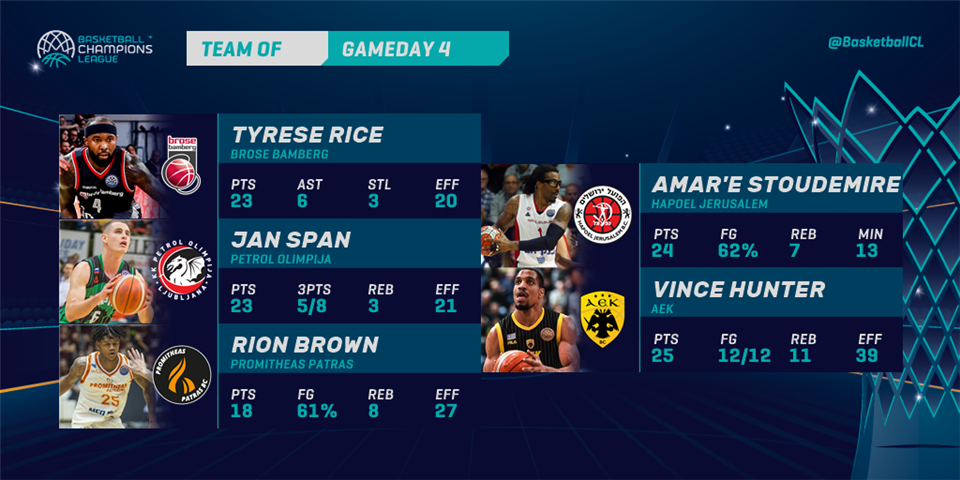 Η καταπληκτική του εμφάνιση στο παιχνίδι του Προμηθέα με την Μπεσίκτας, όπου σημείωσε 18 πόντους και μάζεψε 8 ριμπάουντ, συγκεντρώνοντας 27 βαθμούς στον δείκτη αξιολόγησης, κατατάσσει τον Ρίον Μπράουν ως μέλος της καλύτερης 5άδας του BCL για την 4η αγωνιστική.