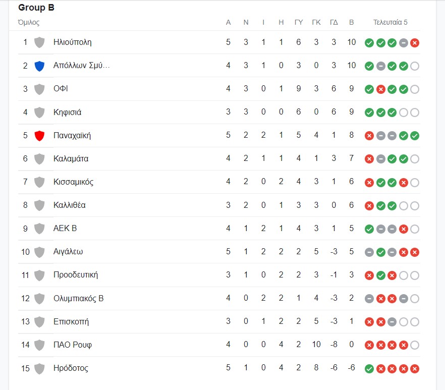 Ο Απόλλων Σμύρνης με το γκολ του Φατιόν στο 23ο λεπτό πήρε τη νίκη -στην έδρα του- κόντρα στα Χανιά με 1-0, για την 5η αγωνιστική του Νοτίου Ομίλου του πρωταθλήματος, ενώ την ίδια ώρα Ολυμπιακός Β’ και Αιγάλεω έμειναν στο 0-0 στο Ρέντη.