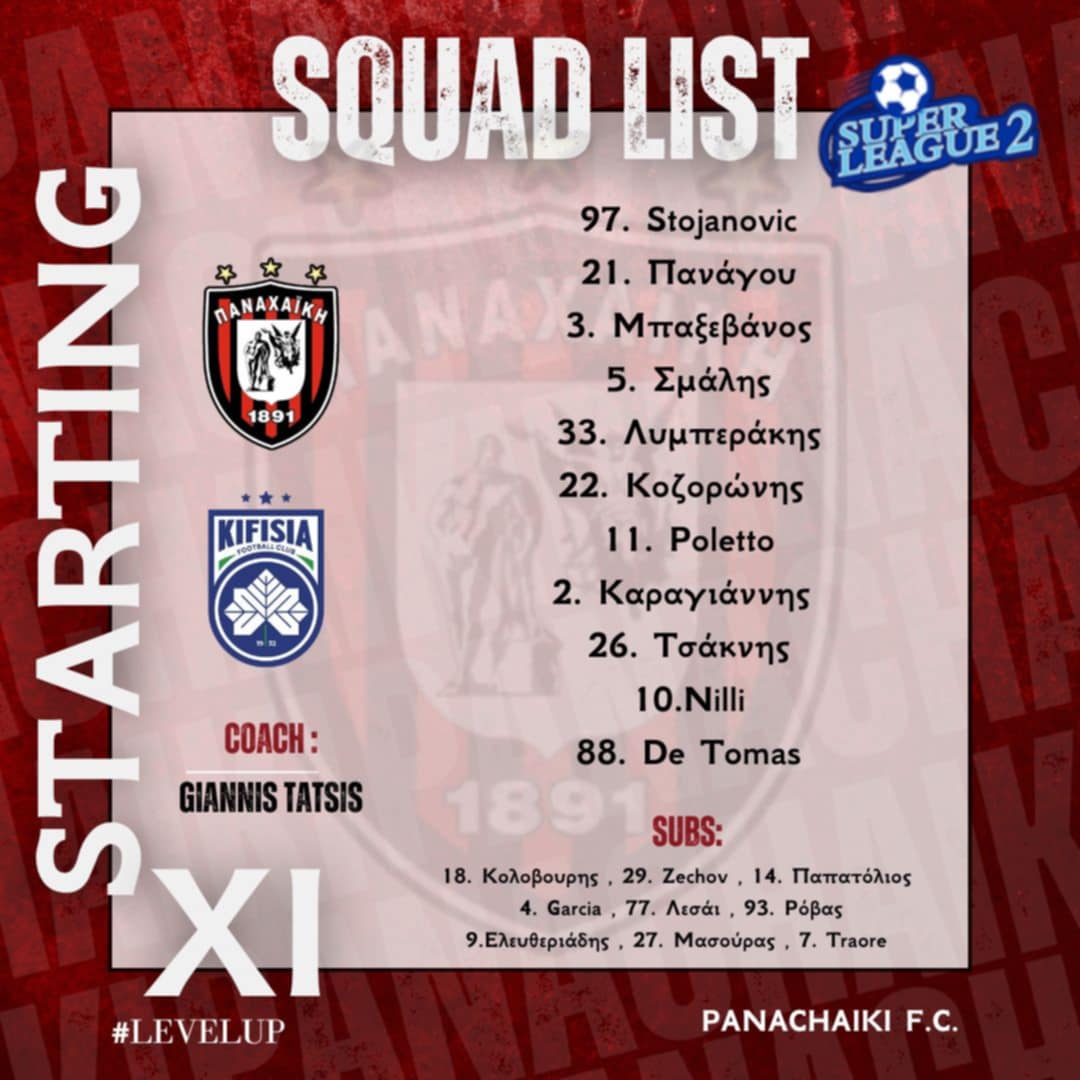 Παναχαϊκή (Γ.Τάτσης): Στογιάνοβιτς, Λυμπεράκης, Μπαξεβάνος, Σμάλης, Πανάγου, Καραγιάννης, Κοζορώνης, Πολέτο, Τσάκνης, Νίλι, Ντε Τόμας.