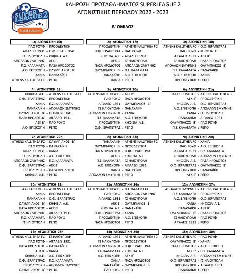 Αναλυτικά, το πρόγραμμα του Β’ ομίλου της Super League 2: