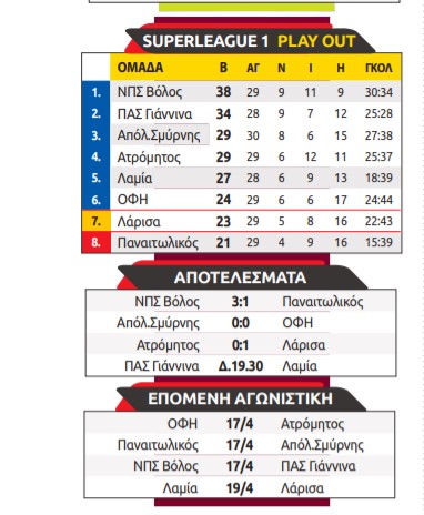 Μεγάλοι κερδισμένοι της 3ης αγωνιστικής των Play Out της Super League 1 ήταν οι ΝΠΣ Βόλος και Λάρισα που πέτυχαν σπουδαίες νίκες κόντρα σε Παναιτωλικό και Ατρόμητο.