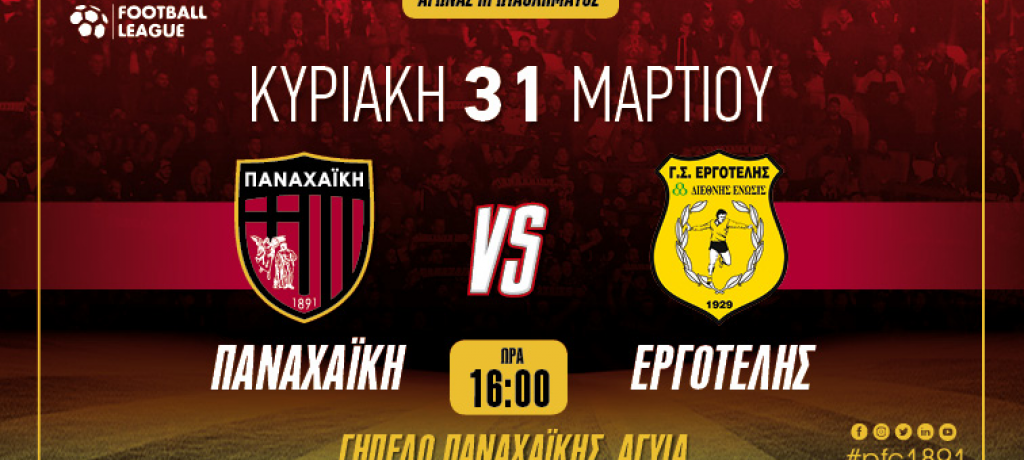 Η ΠΑΕ Παναχαϊκή 1891 ενόψει του αγώνα με τον Εργοτέλη για την 25η αγωνιστική της Football League (31/3-16:00) στο γήπεδο της ομάδας στην Αγυιά ανακοινώνει τα εξής: