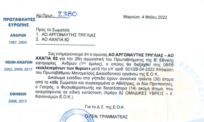 Χωρίς κόσμο θα διεξαχθεί η Κυριακάτικη μονομαχία Αργοναύτη-Αχαγιάς’82 η οποία θα κρίνει σε πολύ μεγάλο βαθμό το ποια από τις δυο ομάδες θα παραμείνει στη Β’...