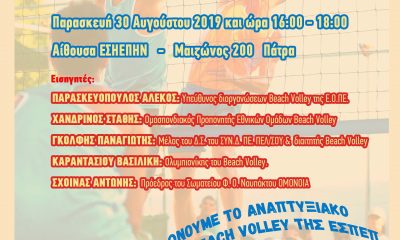 Το Δ.Σ. της ΕΣΠΕΠ. με αφορμή της διοργάνωσης των ΙΙ Μεσογειακών Παράκτιων αγώνων που θα διεξάγονται στην Πάτρα, διοργανώνει την Παρασκευή 30/8/2019 και ώρα 16:00 με...