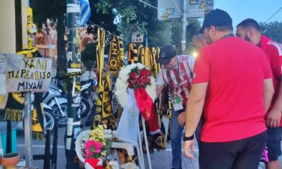 Οι φίλοι του Ολυμπιακού τίμησαν τη μνήμη του δολοφονημένου οπαδού της ΑΕΚ, Μιχάλη Κατσούρη, πριν την έναρξη του τελικού του Conference League. Καλός ο χαβαλές και τα πειράγματα μεταξύ...