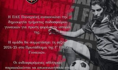 Η ΠΑΕ Παναχαϊκή ανακοίνωσε την δημιουργία τμήματος ποδοσφαίρου γυναικών για πρώτη φορά στην ιστορία της. Η ομάδα θα συμμετάσχει τη σεζόν 2024-25 στο Πρωτάθλημα της Γ’...