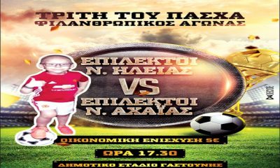 Σήμερα στις 17:30 στο Δημοτικό Στάδιο Γαστούνης θα διεξαχθεί φιλικό για φιλανθρωπικό σκοπό και για χάρη του μικρού Χρήστου Κωστόπουλου, ο οποίος ταλαιπωρείται από πρόβλημα υγείας....