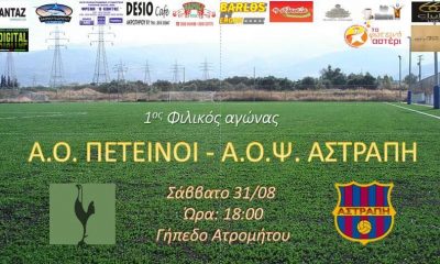 Η Αστραπή Ψαροφαίου συνεχίζει την προετοιμασία της με αμείωτο ρυθμό και το προσεχές Σάββατο (31/8) θα τεθεί αντιμέτωπη με τους Πετεινούς. Το ματς θα διεξαχθεί στο...