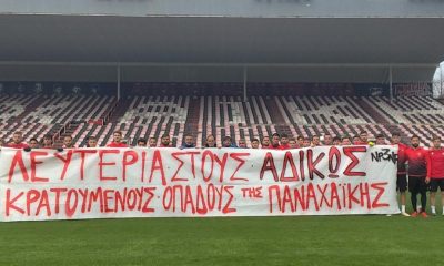 Το πανό που σηκώθηκε στην προπόνηση της Παναχαϊκής.
