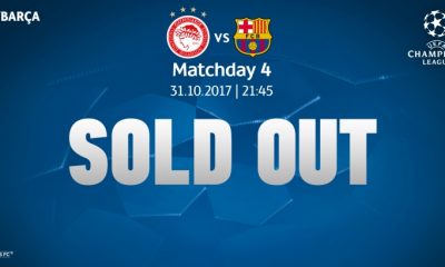 Εισιτήρια τέλος! Η ΠΑΕ Ολυμπιακός γνωστοποίησε ότι εξαντλήθηκαν τα “μαγικά χαρτάκια” για τον αγώνα με την Μπαρτσελόνα (31/10, 21:45) για την 4η αγωνιστική του Champions League. Η...