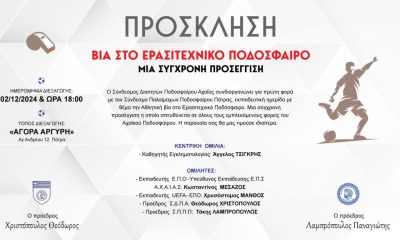 Ο Σύνδεσμος Διαιτητών Ποδοσφαίρου Αχαΐας συνδιοργανώνει για πρώτη φορά με τον Σύνδεσμο Παλαίμαχων Ποδοσφαίρου Πάτρας, εκπαιδευτική ημερίδα με θέμα την Αθλητική βία στο Ερασιτεχνικό Ποδόσφαιρο. Μια...