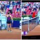 Η Ελληνίδα τενίστρια πήγε να διαμαρτυρηθεί για το λόγο που ο διαιτητής διέκοψε το παιχνίδι.