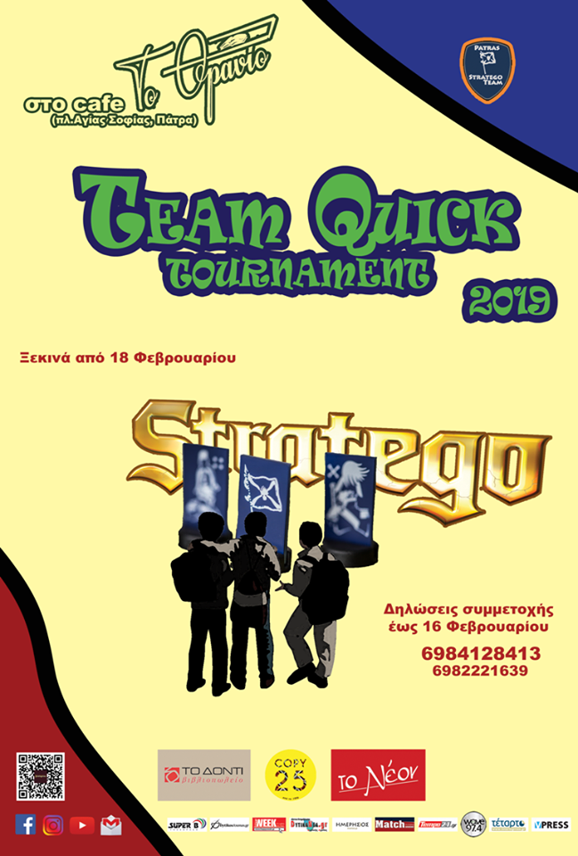 Οι δηλώσεις συμμετοχής πραγματοποιούνται μέχρι και το Σάββατο 16 Φεβρουαρίου, στα τηλέφωνα: 6984128413 και 6982221639, όπως και στην ομάδα μας στο facebook: “Patras Stratego Team”.