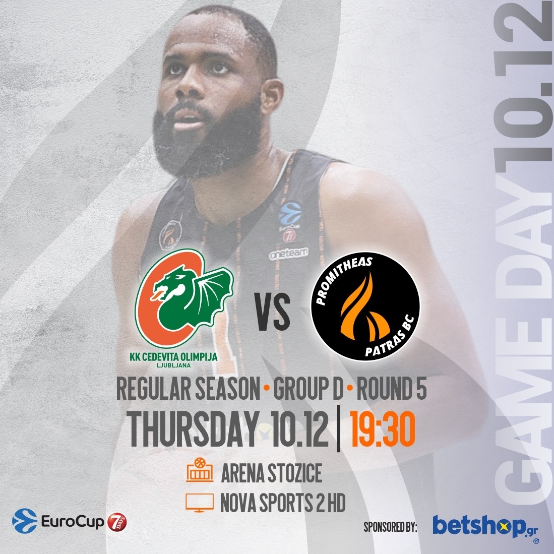 Τελευταία ευκαιρία είναι η αποψινή για τον Προμηθέα στη Σλοβενία απέναντι στην Τσεντεβίτα (10/12,19.30) έτσι ώστε να διεκδικήσει δυνατά το εισιτήριο για το Top-16 του EuroCup!