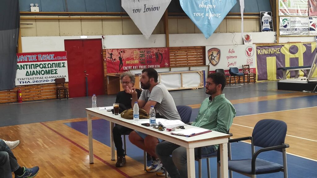 Έτσι, στις 27/06 βρέθηκε στο κλειστό της Ήλιδας, όπου έγινε συνάντηση με εκπροσώπους σωματείων της Ηλείας, στην οποία πέραν του Π. Λυκούδη έδωσαν το παρόν και τα μέλη από το νομό Ηλείας που εξελέγησαν στο δ.σ. της ΕΣΚΑ-Η (Θοδωρής Τσίπας, Ανδρέας Γκινάλας και Νίκος Φραγκιάς).