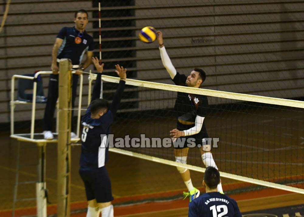 Ο «πορτοκαλί» τεχνικός μη έχοντας άλλη επιλογή, έβγαλε τον αυτοματισμό που χρειάζεται σε τέτοιες περιπτώσεις και γύρισε σε κεντρικό στον αγώνα τον ακραίο Γιαννόπουλο με την επιλογή αυτή να τον δικαιώνει εν τέλει. Οι γηπεδούχοι βρέθηκαν πίσω με 0-1 στα σετ, έκαναν την ανατροπή, όμως, ενώ θα μπορούσαν να έχουν τελειώσει το ματς, έγινε το 2-2 και η χαρά της νίκης παρατάθηκε για το τάι-μπρέικ όπου ήρθε με το 15-7. Επόμενο ματς στη Σάμο απέναντι στον Κέρκη.