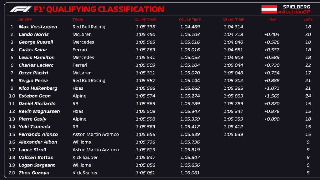 Μετά την χθεσινή νίκη του στο Sprint Race, ο πιλότος της Red Bull ήταν εξαιρετικά γρήγορος και στις κατατακτήριες δοκιμές, τερματίζοντας με τον καλύτερο χρόνο στο «σπίτι» των «ταύρων», αφήνοντας κατά 4 δεκάτα πίσω του τον δεύτερο Λάντο Νόρις.