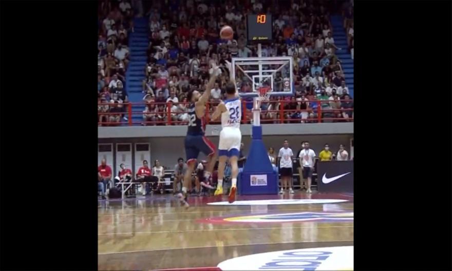 Ο Νίκος Γκίκας προσέφερε την πιο εντυπωσιακή φάση στο παιχνίδι της Εθνικής Ανδρών επί της Μεγάλης Βρετανίας, χάρη στο τρίποντο που σημείωσε με το ένα χέρι από το κέντρο του γηπέδου, στο φινάλε της τρίτης περιόδου.