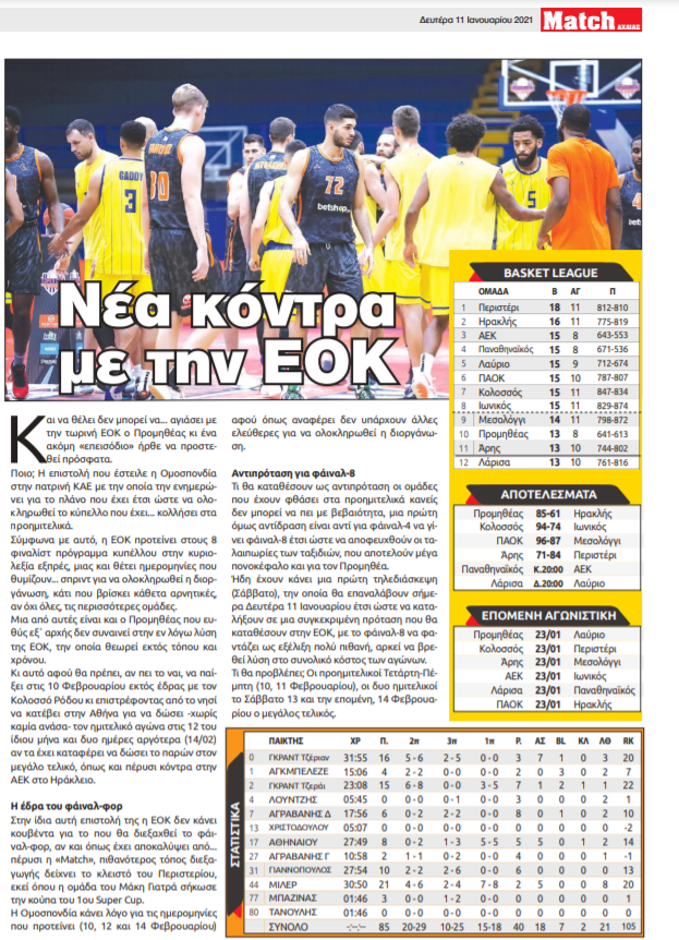 Μόλις στο χθεσινό της φύλλο η «Match» είχε εκτενές ρεπορτάζ για την… μετωπική που ετοιμάζει ο Προμηθέας στην ΕΟΚ.