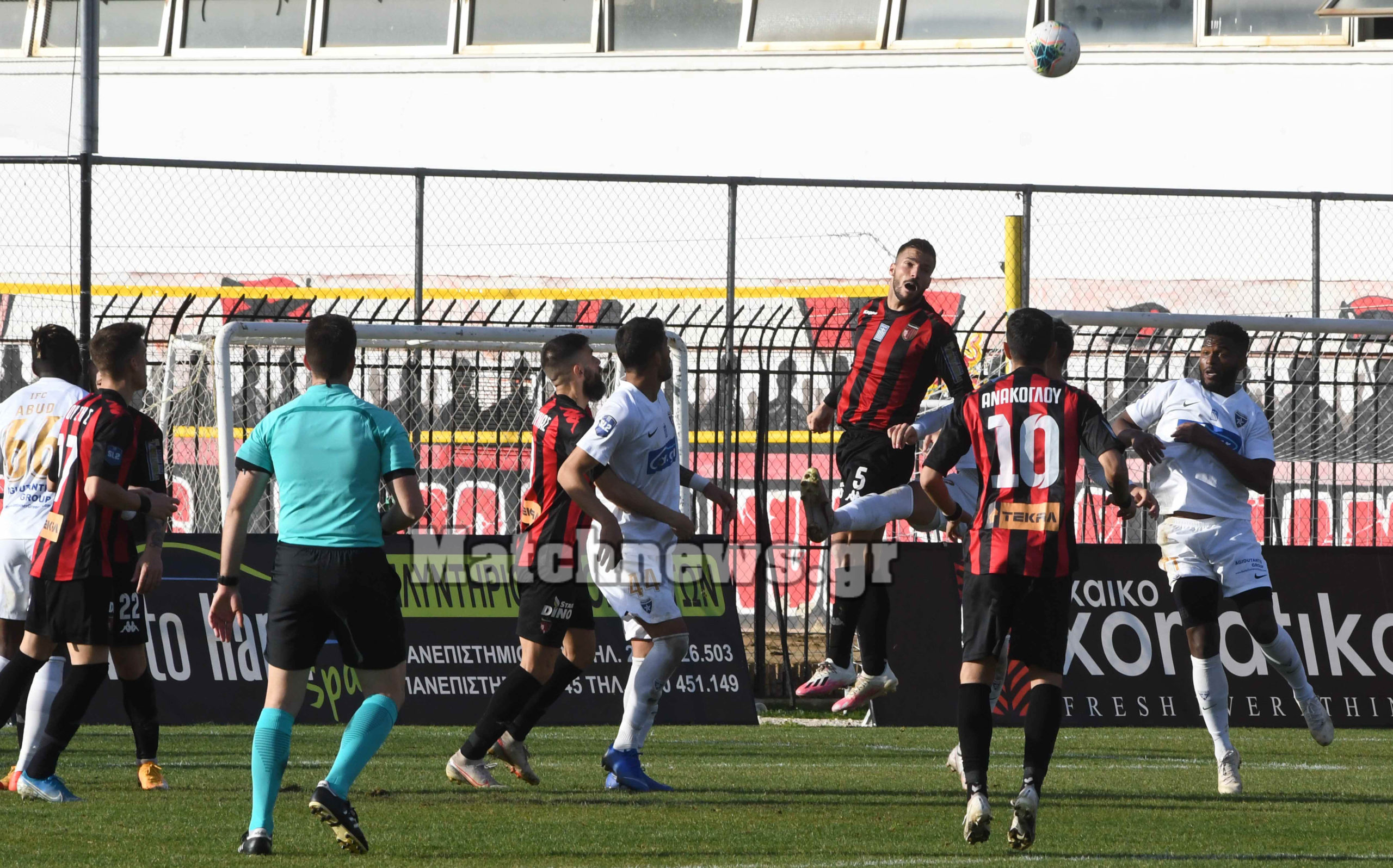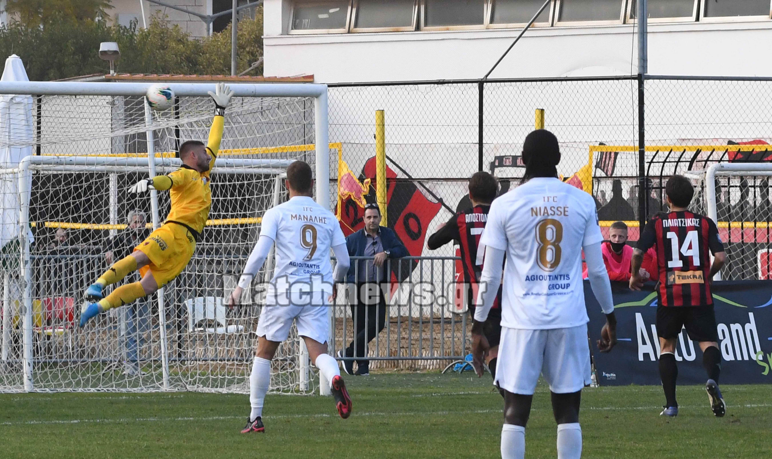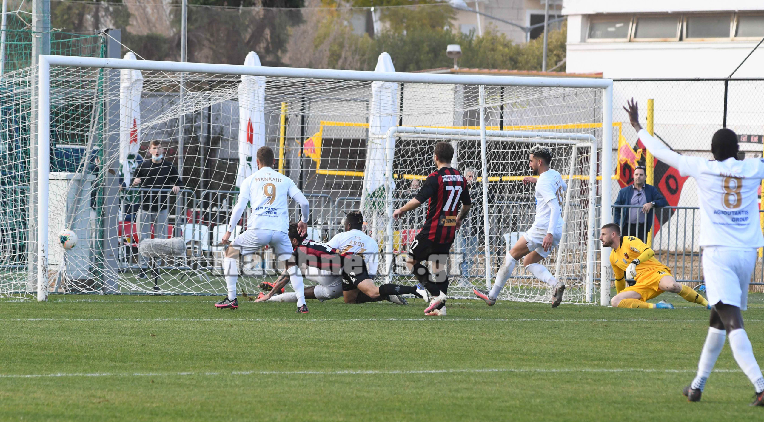 Στο 8ο λεπτό ο Νιφορόπουλος απείλησε για τους «κοκκινόμαυρους», με την προσπάθεια του να καταλήγει στα χέρια του γκολκίπερ των γηπεδούχων.