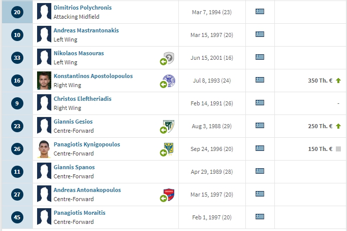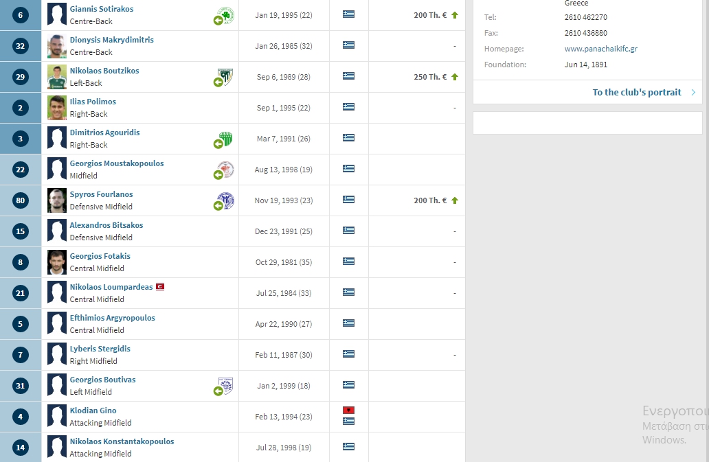 Το παγκοσμίως γνωστό σάιτ transfermarkt.com έχει ολόκληρο το ρόστερ της Πατρινής ομάδας (και πέρσι το είχε, αλλά με λάθη) και μάλιστα οι περισσότερες μεταγραφικές κινήσεις έχουν και το αντίστοιχο ποσό αξίας δίπλα στους παίκτες.