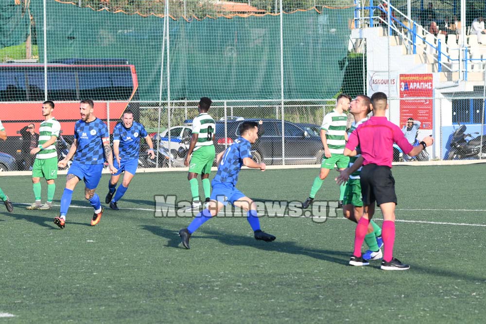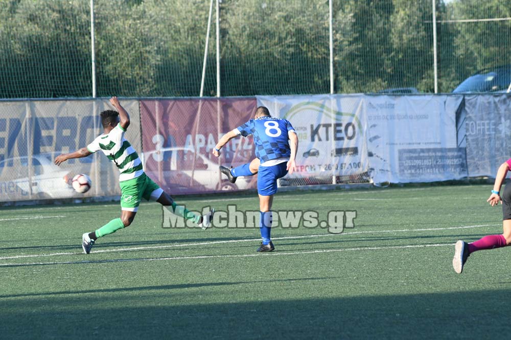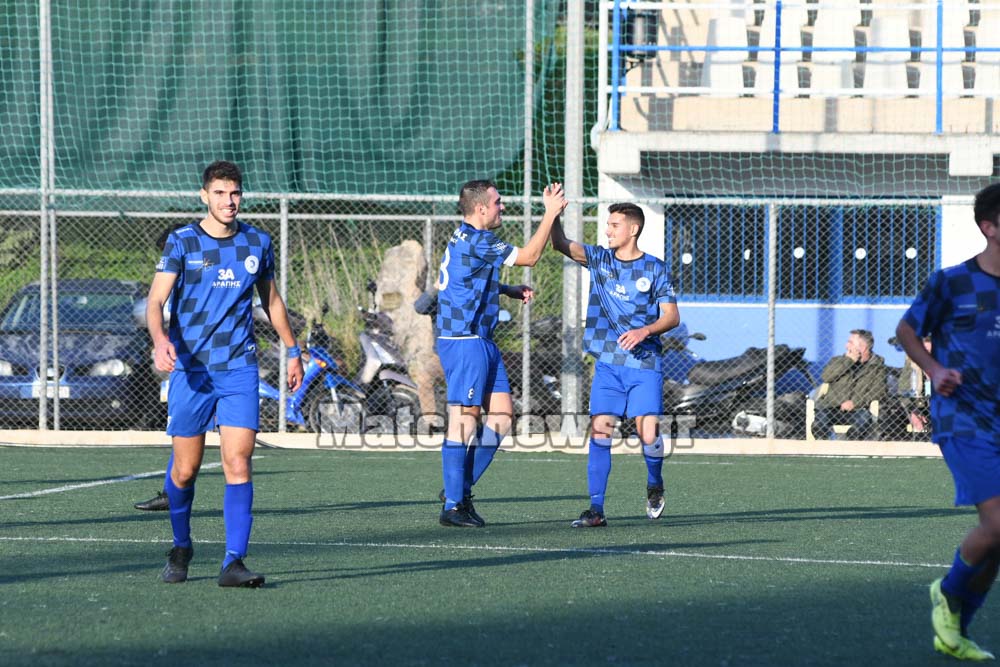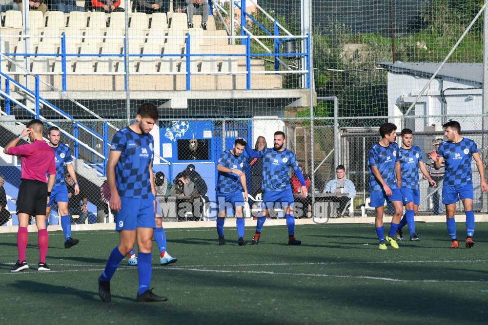 Μέχρι να έρθει το πρώτο γκολ υπήρχε άγχος, αλλά οι «μπλε» είχαν καλές φάσεις και έπαιζαν υπομονετικά, με τους Αργίτες να απειλούν στο 22΄με σουτ, που έφυγε λίγο έξω από την εστία του Δρακόπουλου. Τελικά την λύση έδωσε ο Γεωργαντόπουλος από την «άσπρη βούλα» στο 35΄, εκτελώντας άριστα και ψύχραιμα την εσχάτη των ποινών που ο ίδιος είχε κερδίσει.
