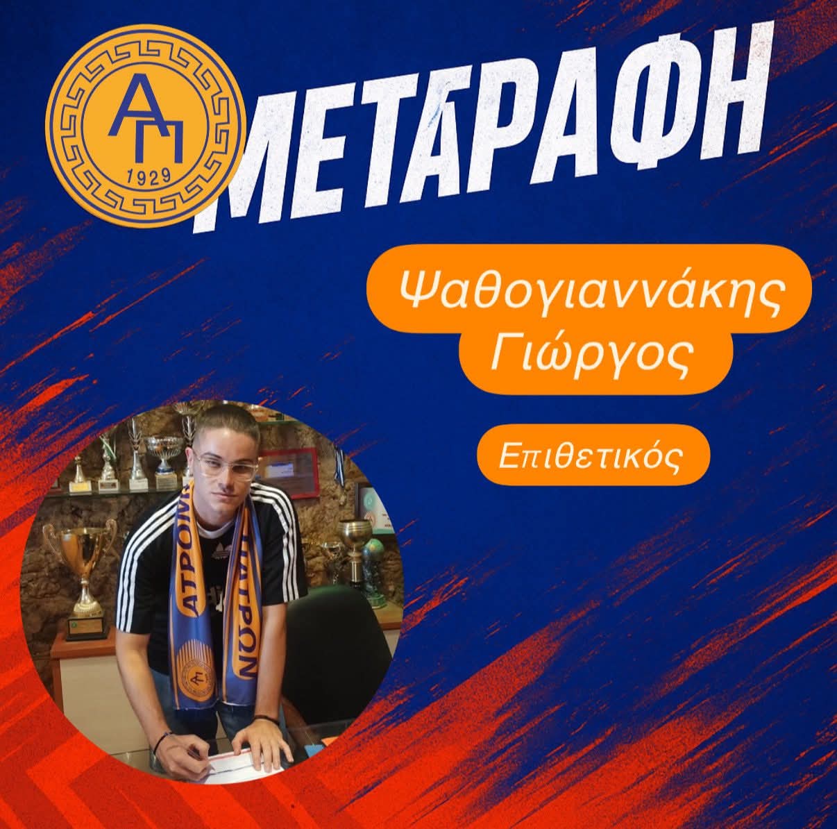 Πριν από λίγο λοιπόν επισημοποιήθηκε η συμφωνία με τον Γιώργο Ψαθογιαννακη, ο οποίος ήταν πρώτος σκόρερ στην ΕΠΣ Τρικάλων με 34 γκολ στο ενεργητικό του, με τη φανέλα του Απόλλωνα Λυγαριάς.