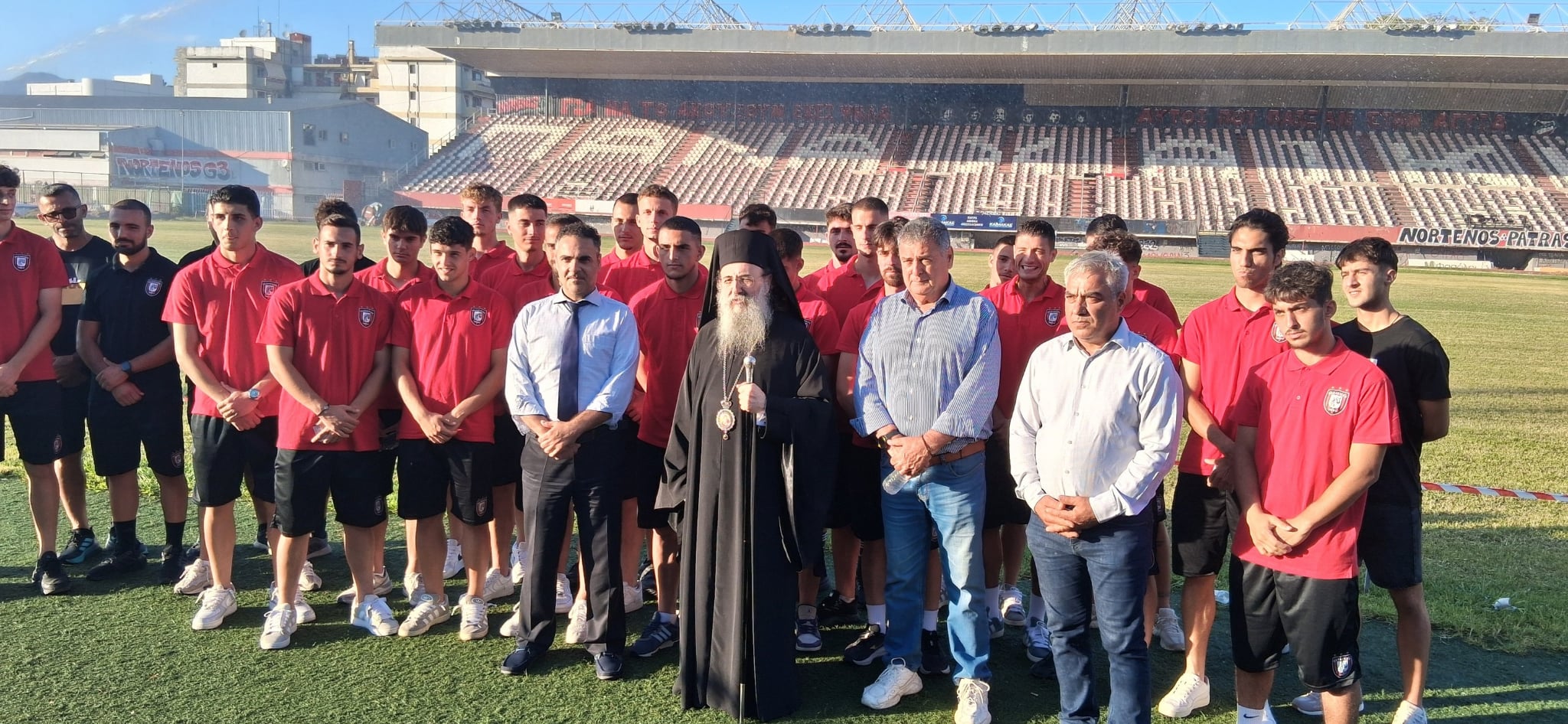 Σήμερα το απόγευμα ετελέστη ο καθιερωμένος αγιασμός στο ποδοσφαιρικό τμήμα της Παναχαϊκής ενόψει της πρεμιέρας στη Γ’ εθνική.