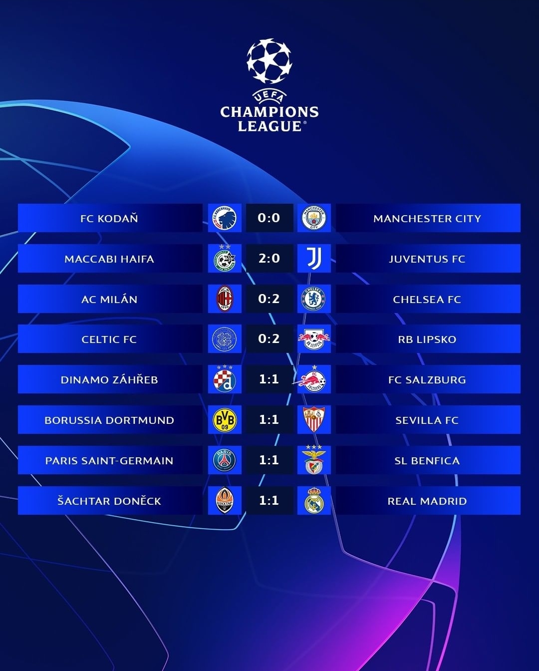 Με το ίδιο σκορ έληξαν και τα ματς Σαχτάρ Ντόνετσκ – Ρεάλ Μαδρίτης, Ντόρτμουντ – Σεβίλλη και Ντιναμό Ζάγκρεμπ – Σάλτσμπουργκ, την ώρα που η Τσέλσι πήρε τεράστια νίκη μέσα στο Μιλάνο με 2-0 απέναντι στη Μίλαν.
