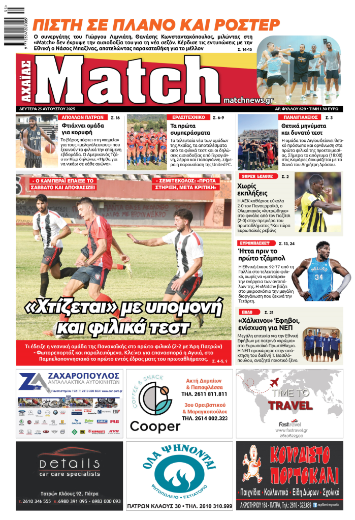 Διαβάστε στη «Match»: Τι είδαμε στο πρώτο φιλικό της Παναχαϊκής, το πανόραμα του Ευρωμπάσκετ και όλα τα τεστ των ομάδων της Αχαΐας