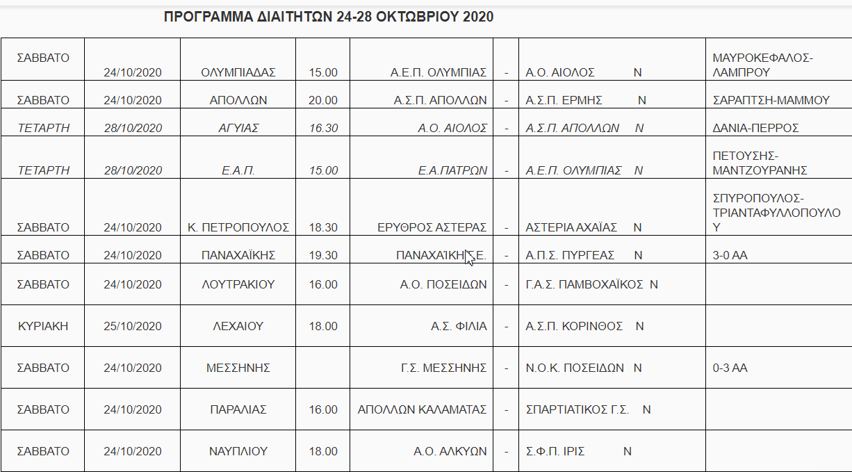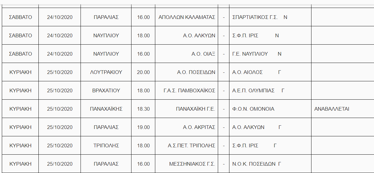 Τα παιχνίδια της ΠΓΕ με την Ομόνοια Ναυπάκτου θα γίνουν το άλλο Σάββατο (31/10) και με την Ολυμπιάδα εκτός έδρας αντίστοιχα την Κυριακή (1/11).