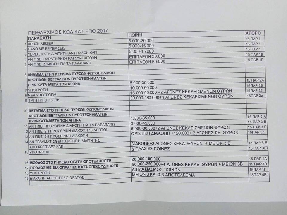 Δείτε αναλυτικά τις ποινές και τις περιπτώσεις: