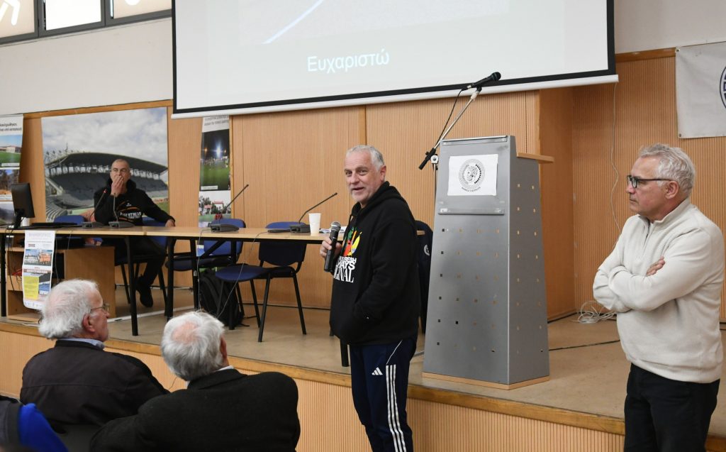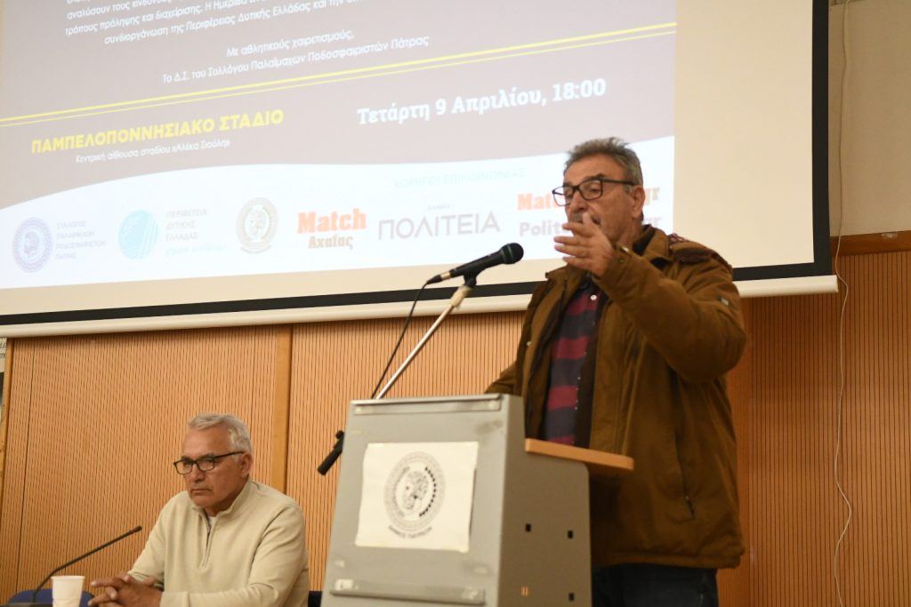 Η κατάμεστη αίθουσα «Αλέκα Σιούλη» του Παμπελοποννησιακού Σταδίου φιλοξένησε την εκδήλωση, στην οποία τα μέλη των Παλαίμαχων και το κοινό παρακολούθησαν με ιδιαίτερο ενδιαφέρον τις εισηγήσεις των ειδικών.